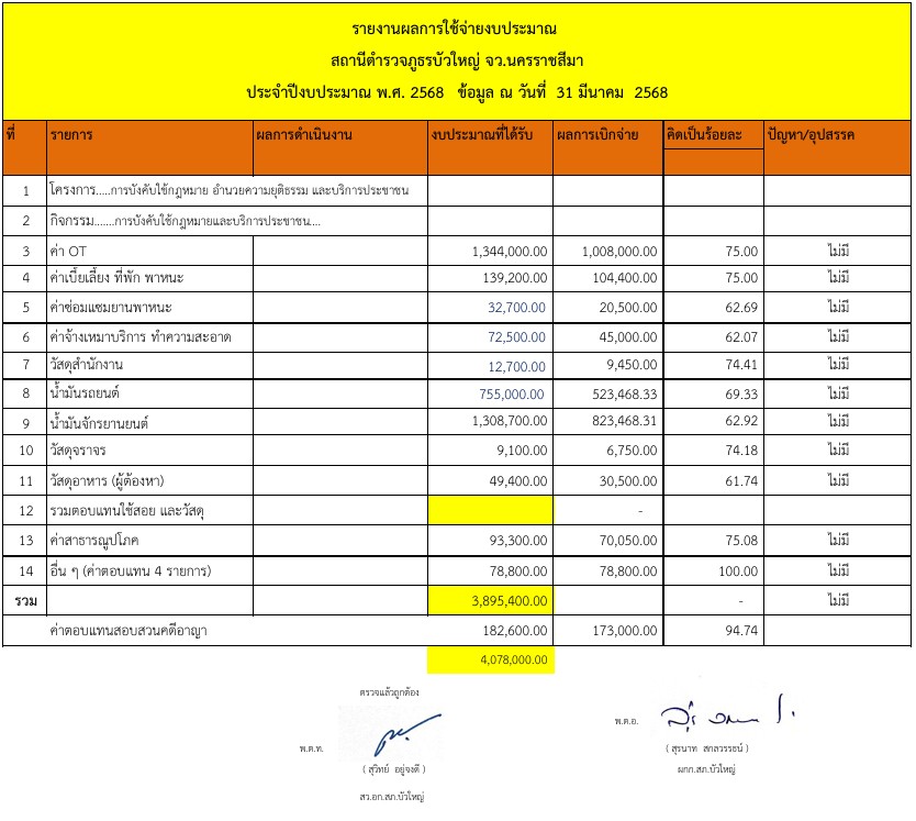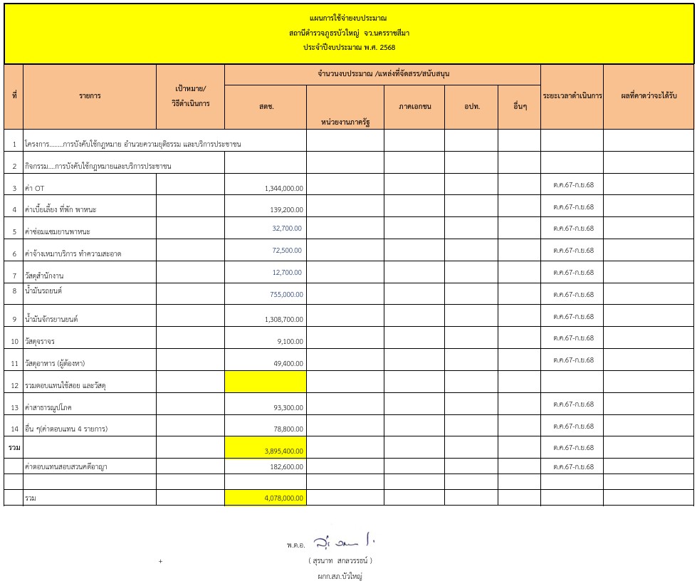 แผนการใช้จ่ายงบประมาณสถานีตำรวจประจำปี พ.ศ.2568